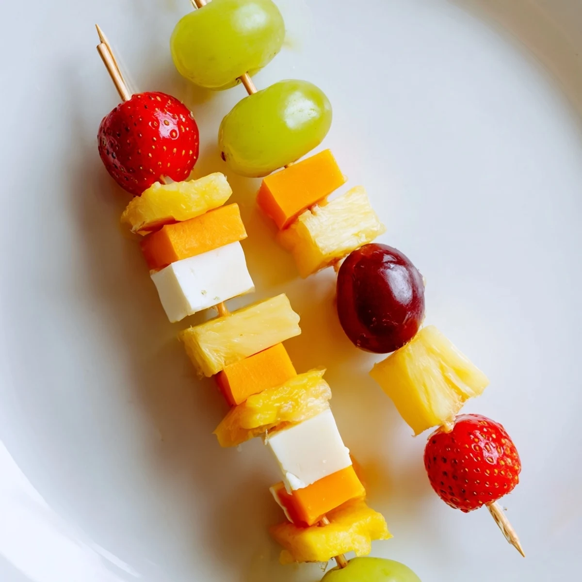 For optimal freshness and texture, assemble these kabobs within 2-3 hours of serving. The cut fruit may release some moisture over time, which can affect the cheese. If you need to prepare components ahead, wash and cut the fruit and cheese the night before, then thread them onto skewers just before your event.