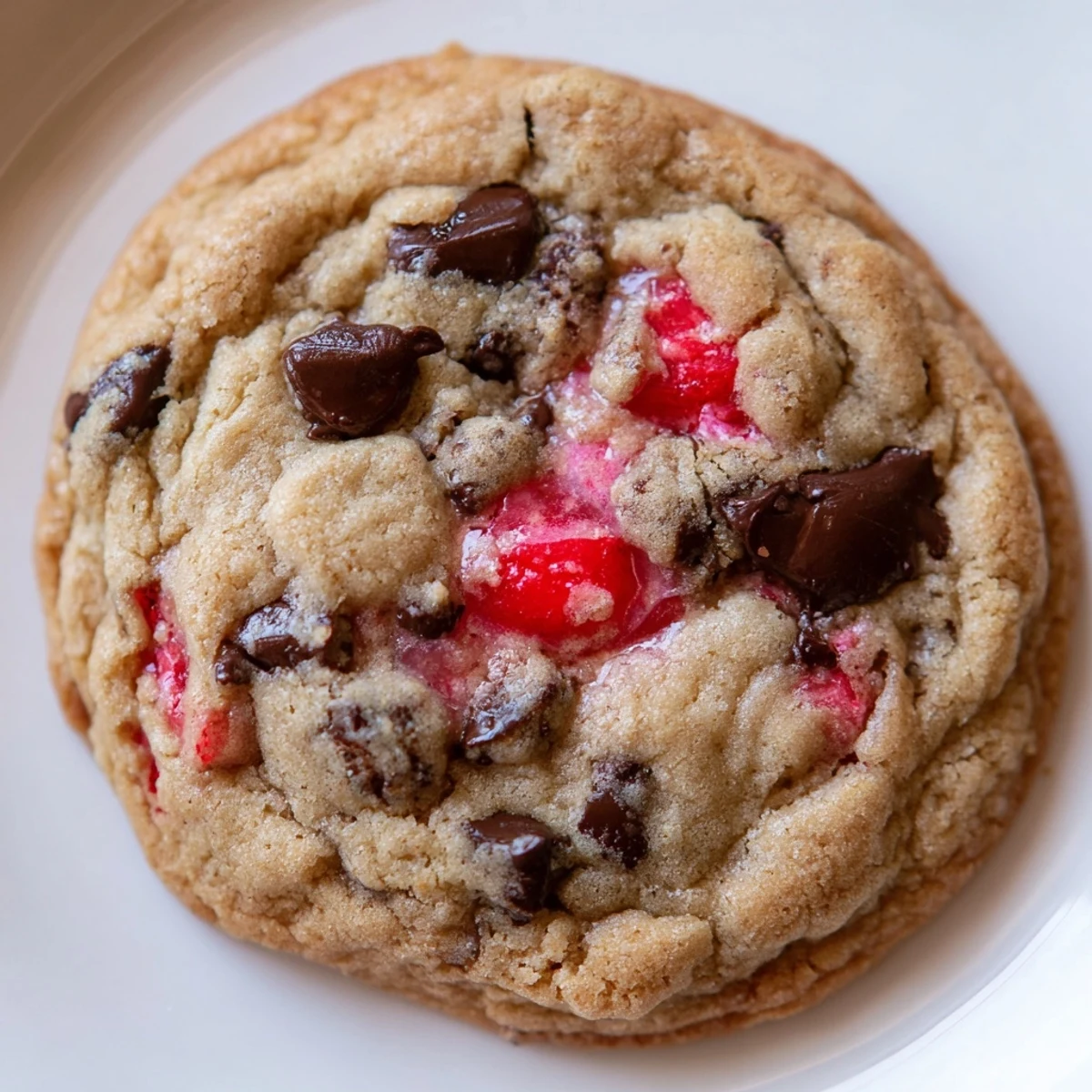 These soft, chewy maraschino cherry chocolate chip cookies combine the buttery sweetness of classic homemade cookies with the vibrant pop of chopped maraschino cherries. The dough comes together quickly with softened butter creamed with granulated and brown sugars, then enriched with eggs and vanilla. After folding in the dry ingredients, generous handfuls of patted-dry cherries and semi-sweet chocolate chips create pockets of sweetness throughout. Baked at 350°F for just 10-12 minutes, the edges turn golden while centers remain perfectly tender. Cooling on the baking sheet for five minutes ensures they set properly before transferring to a rack. The result is 24 colorful, bakery-style cookies that balance tart cherry notes with rich chocolate—ideal for bake sales, holiday platters, or everyday treats.