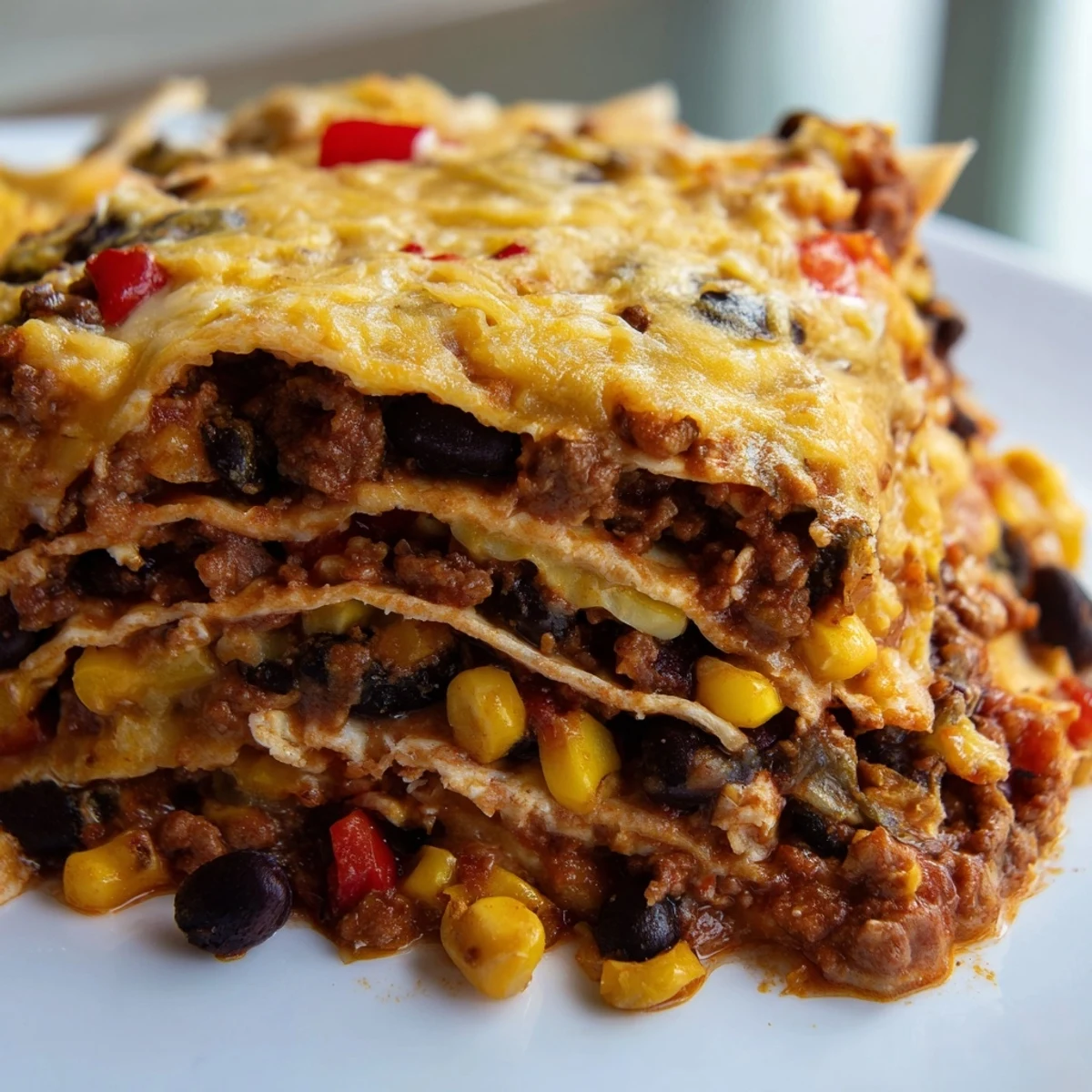 This Mexican-inspired layered dish brings together the comforting structure of Italian lasagna with bold Tex-Mex flavors. Soft flour tortillas replace pasta, layered with a savory mixture of seasoned ground beef, black beans, sweet corn, and diced tomatoes. The assembly comes together quickly—just 25 minutes of prep before baking creates those irresistible cheesy, bubbling layers that emerge from the oven.